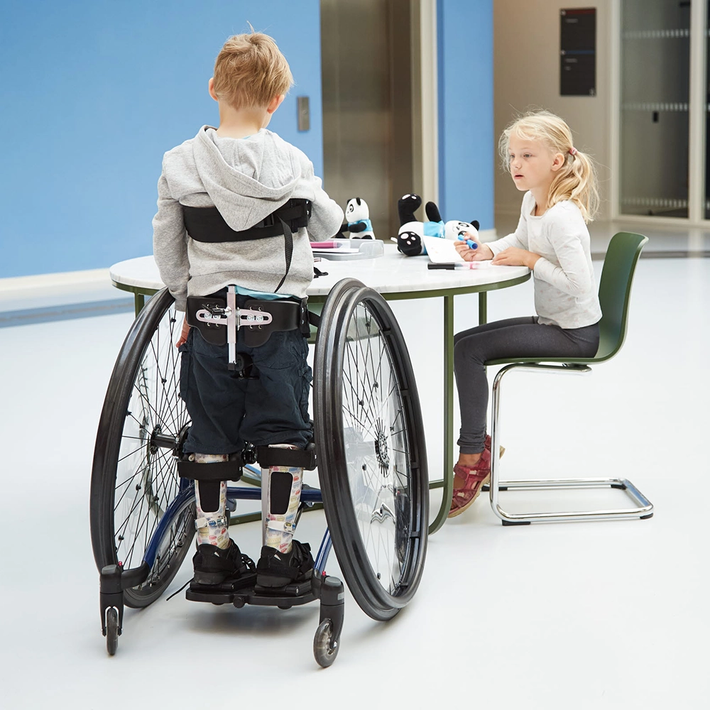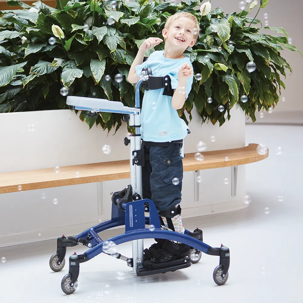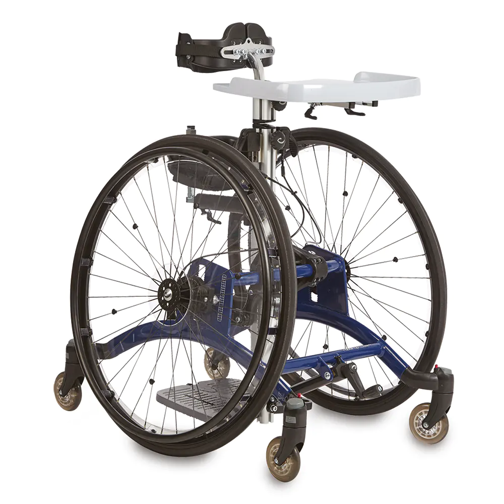 Διατίθεται ως στατικός ορθοστάτης για σταθερή ορθοστάτιση ή ως κινητός ορθοστάτης με τροχούς κίνησης, ώστε - όπου ενδείκνυται - το παιδί να μπορεί να μετακινείται και να συμμετέχει πιο ενεργά στο περιβάλλον.