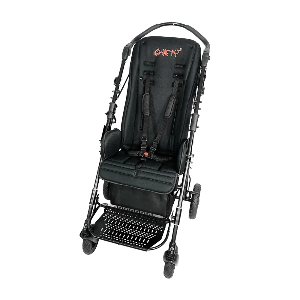 Περιλαμβάνει εργονομική ζώνη 5 σημείων με ενσωματωμένη στήριξη λεκάνης. Υπάρχουν επίσης διαθέσιμες αναβαθμίσεις με ζώνες τύπου butterfly, υποστηρίγματα θώρακα και ζώνες ποδιών.Swifty – Ελαφρύ, πρακτικό